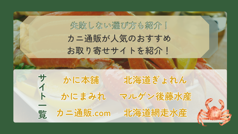 この記事では、カニ通販が人気でおすすめのお取り寄せサイトや失敗しない選び方を紹介します。