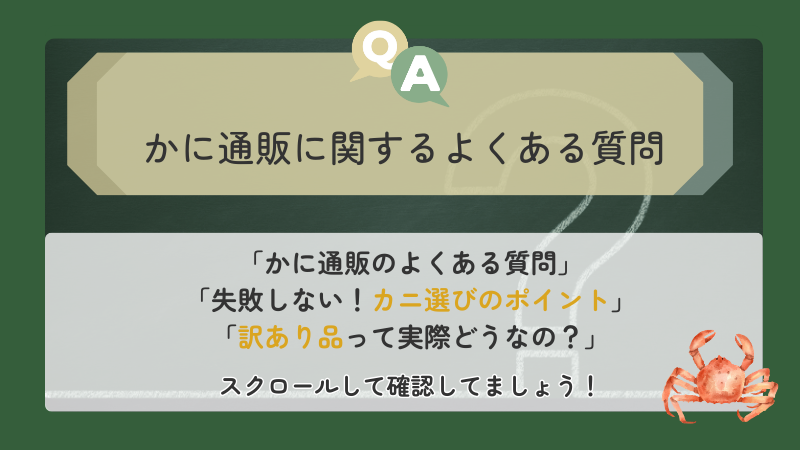 かに通販を利用するときは、「失敗しないために気をつけることは?」「訳あり品はおすすめ?」など疑問や不安が出てきます。