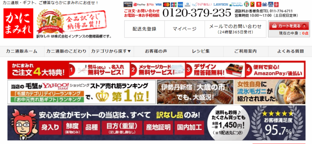 カニをお得に買う場合は、サイト内にクーポンや訳あり商品がないかチェックしておくのがポイントです。