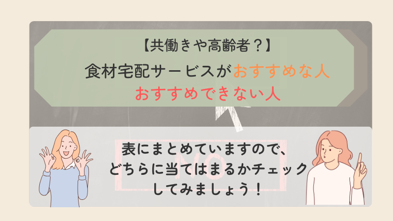 【共働きや高齢者?】食材宅配サービスがおすすめな人・おすすめできない人