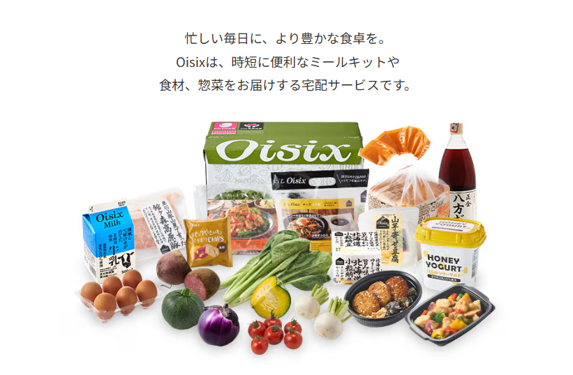 オイシックスは、料理に必要な材料が揃っているミールキットや惣菜、青果、加工食品などを販売する会員制の宅配サービスです。