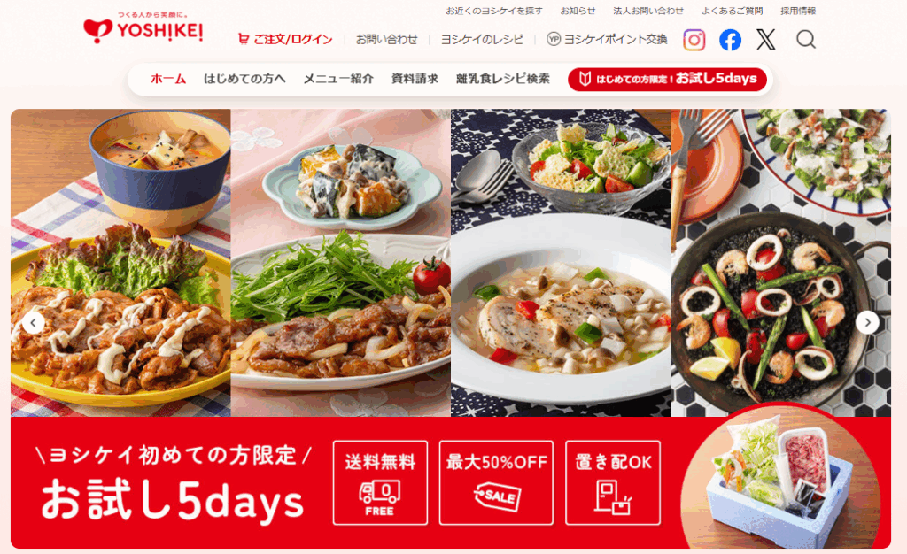 ヨシケイの利用が初めての場合は、通常価格の半額で利用できる「お試し5days」がお得です。