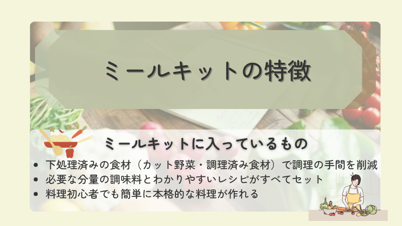 ミールキットとは、料理の食材とレシピがセットになった商品です。
