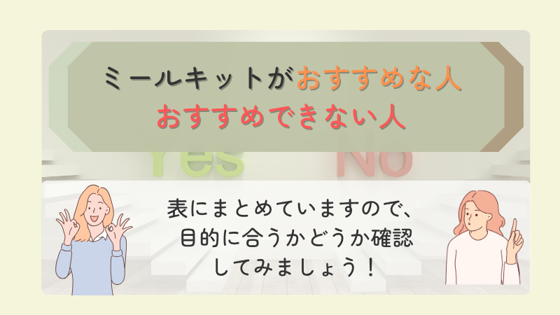 ミールキットをおすすめできる人と、できない人を以下にまとめました。