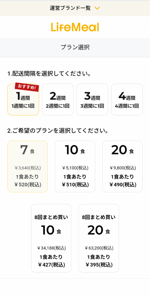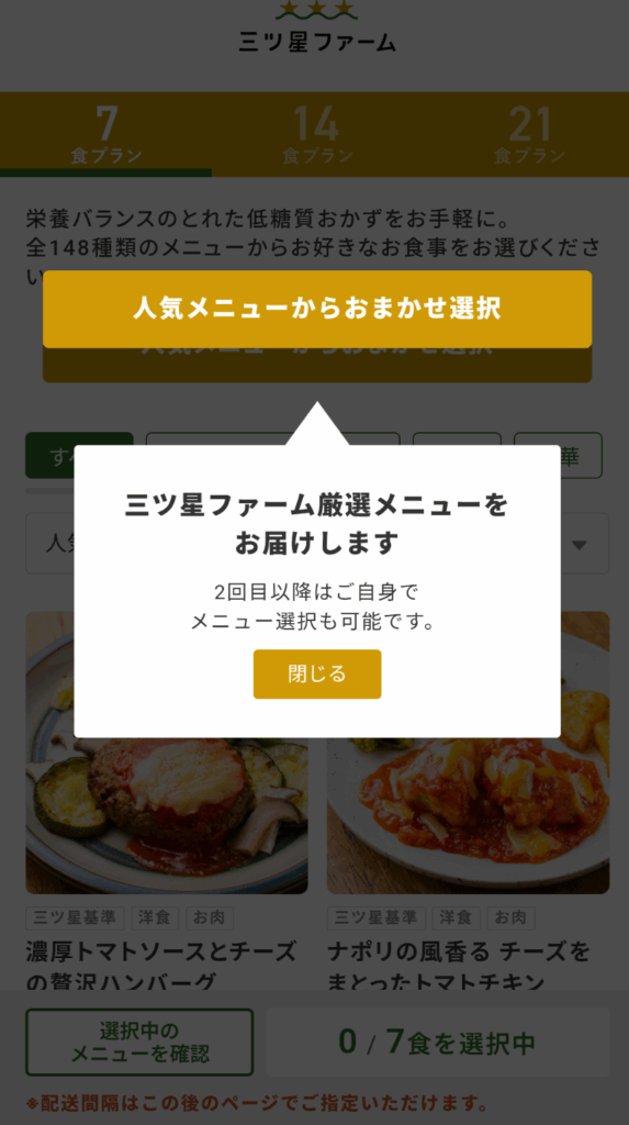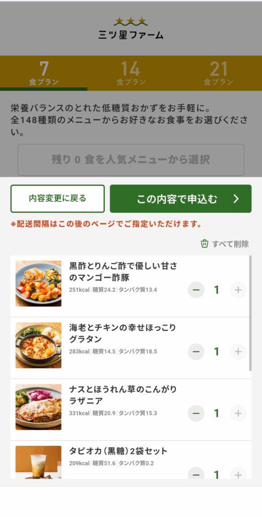購入プラン | 21食コース 14食コース 7食コース |