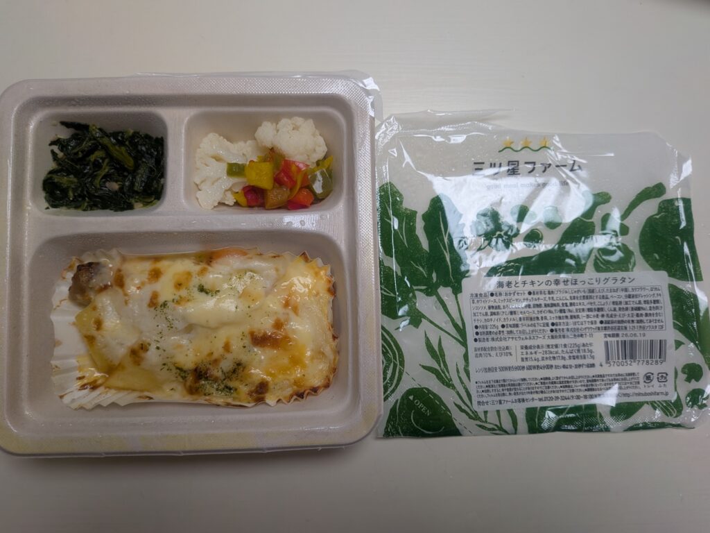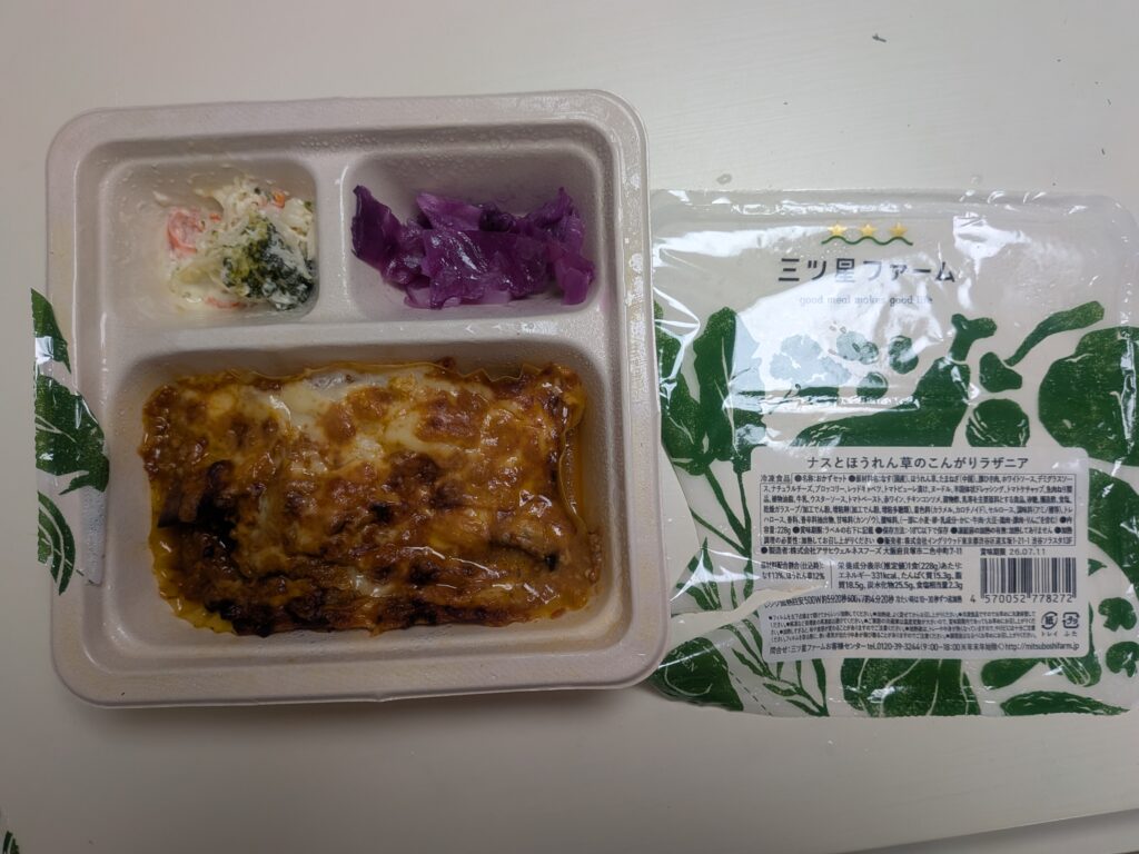 初めての三つ星ファームのおかずプレートは、ナスとほうれん草のこんがりラザニアにしました。