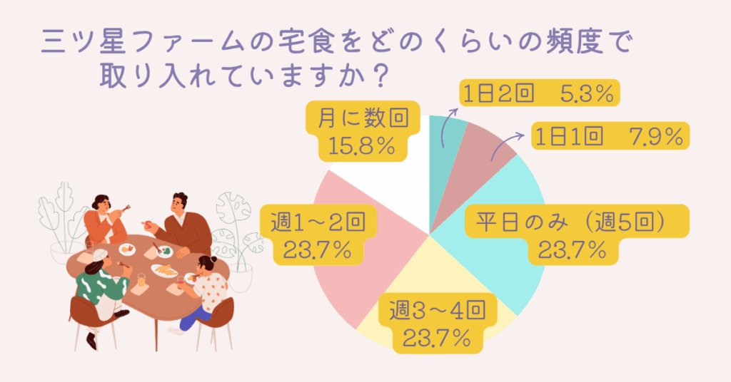 また、どのくらいの頻度で三ツ星ファームの宅食サービスを利用しているのかということについてもアンケートでお伺いしました。