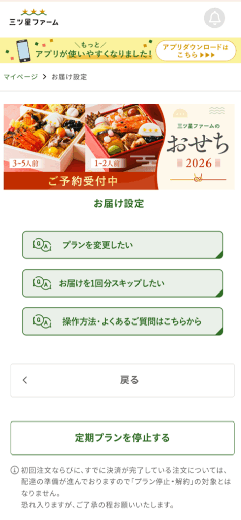 三ツ星ファームの公式アプリからの解約も可能です。