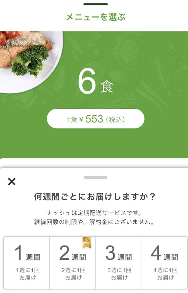 ナッシュのプランは、6・8・10・20食の4種類があります。