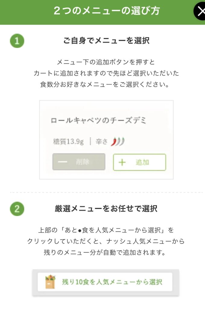 ナッシュの宅食サービスは、初回は6・8・10食プランから、2週目以降からは20食プランも選べます。