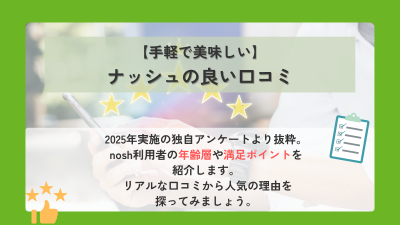 ナッシュを利用しようと思った時、実際に頼んだことのある方の感想が気になりますよね。