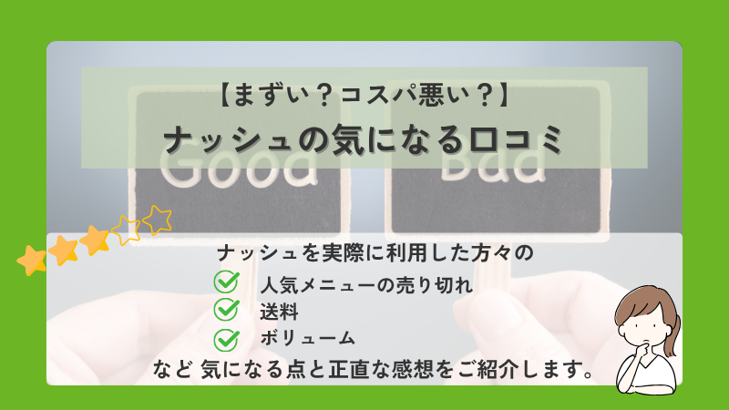 ナッシュを実際に利用した方による気になる点について紹介します。