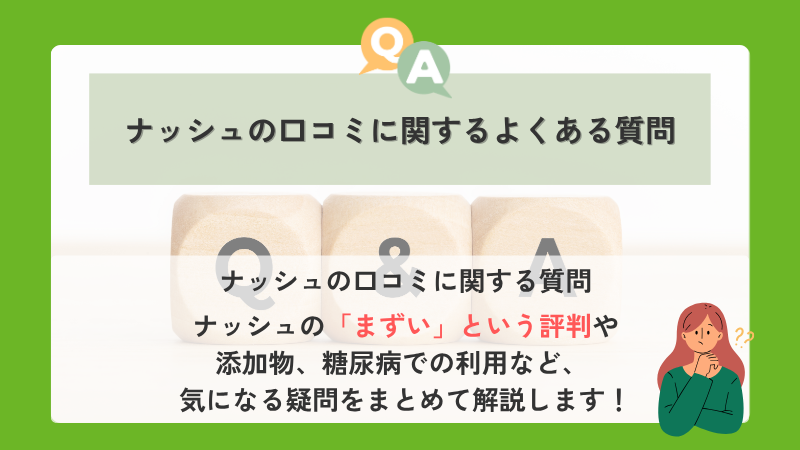 ナッシュの口コミに関するよくある質問をまとめましたので、ご利用の際の参考にしてくださいね。