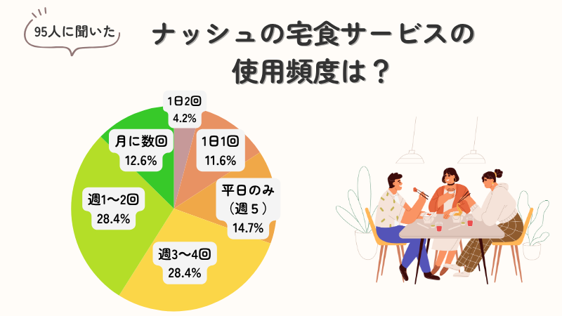 ここで、アンケートでナッシュの宅食サービスをどのくらい取り入れているのかという使用頻度についてもお伺いしました。
