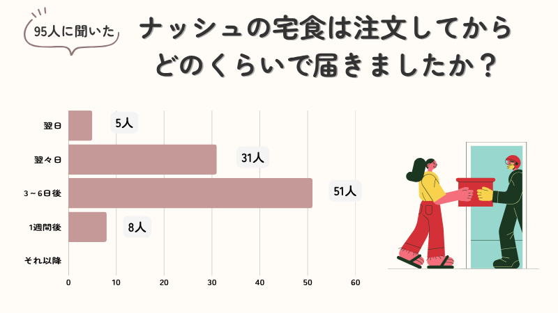 ナッシュの宅食サービスは、注文してから実際にどのくらいで届いたのかということについてアンケートでお伺いしました。